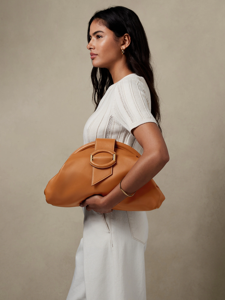 The roomy clutch has been a favorite for a few seasons. These larger styles are going strong for spring and summer with a soft, slouchy feel that works day and night. Runway standouts include Gabriela Hearst’s Phoebe foldover with gold hardware and Proenza Schouler’s versatile Bar bag (which you can also tote by the handles).