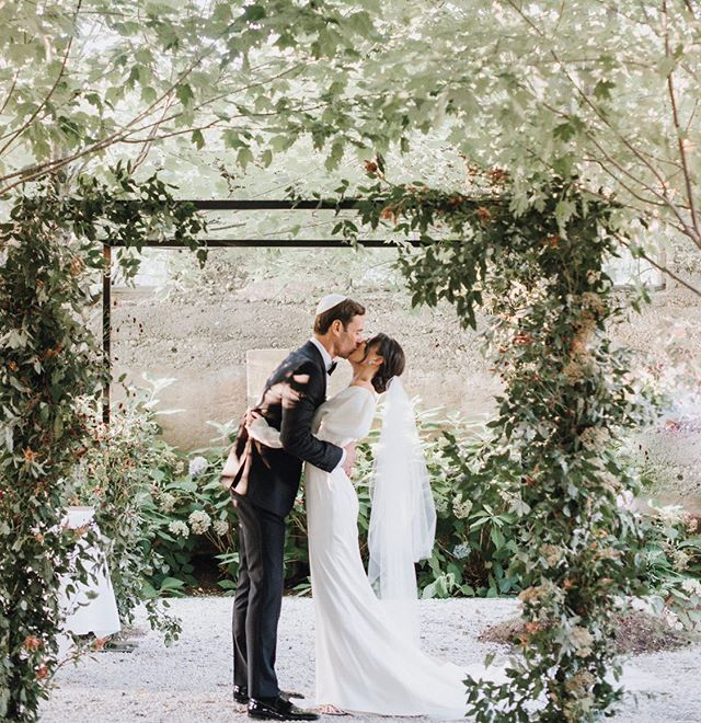 “This came together pretty last-minute once we postponed our bigger ceremony to 2021. Stores still weren’t open in NYC, and with delivery dates still so unpredictable at that time, I took a long look at my own closet. I found a number of white dresses in there, many of which I’ve worn way too many times over the years. This one, which I’ve had since high school, jumped out at me as such a wearable easy option — no zippers! — and a total 180 from what I planned on wearing for my ‘big’ wedding. (For that, I’m wearing a Romona Keveza gown.) There was something so perfect about wearing a dress I’ve had for so many years for our small ceremony in my childhood backyard.”