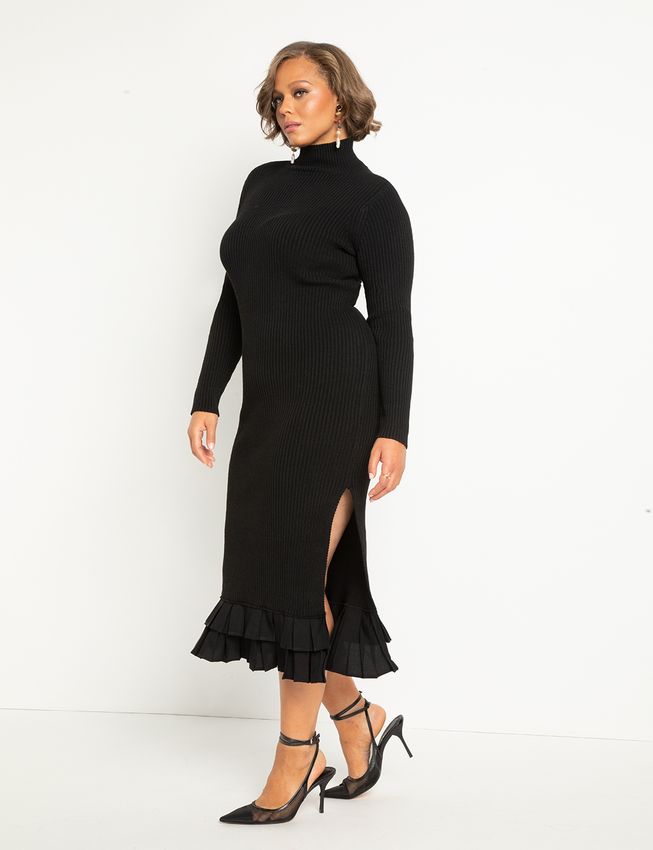 Eloquii Turtleneck Sweater Dress With Pleated Ruffle Hem, $, available at Eloquii