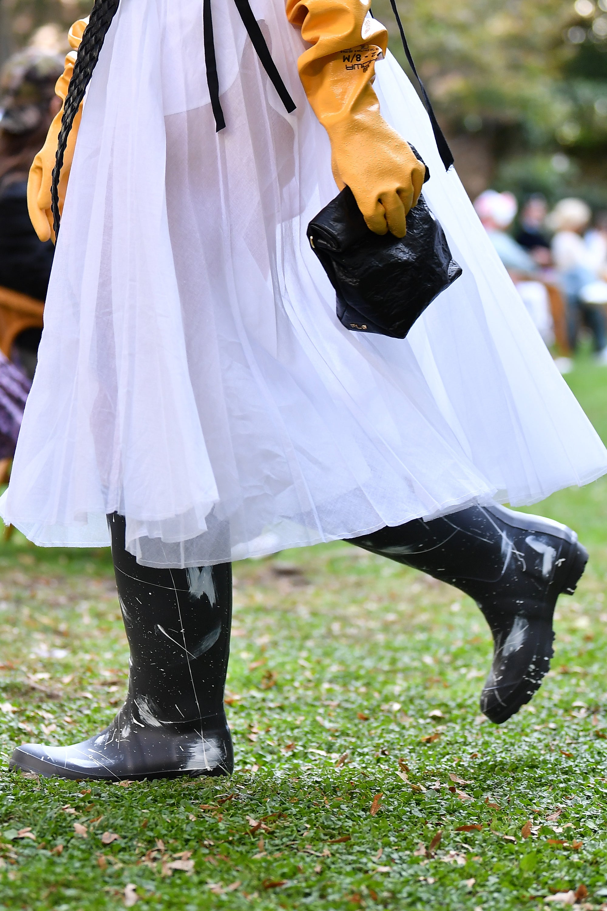In a marriage of sorts, cottagecore and high fashion came together during Milan Fashion Week in September — when models at Philosophy di Lorenzo Serafini’s garden-themed show graced the grassy runway wearing paint-stained jeans, picnic-print frocks, and green- and navy-colored knee-high rain boots. “I had so much time to reflect on things this year, and I rediscovered simple pleasures,” Serafini told Vogue. “I was moving toward something very easy and simple: painting, gardening, enjoying the open air.” Sound familiar? For the final look, Serafini sent out a model wearing a white, tulle wedding dress. She wore with it a pair of, you guessed it, Wellington boots.