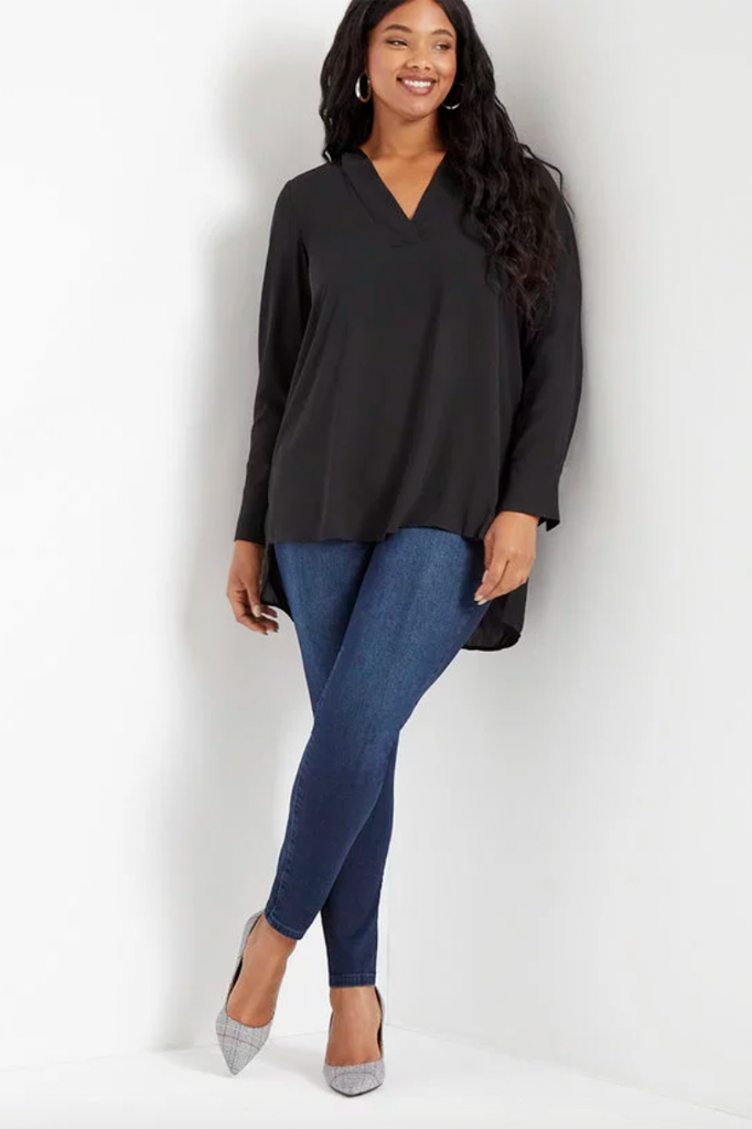 We understand TikTok may have “killed” the skinny jean, but you can’t deny that the fitted style effortlessly elongates your legs and makes them appear miles long. (Fans of this snug fit will deny that the trend is actually over.) Eloquii customers count themselves among skinny-jean existing champions, especially when it comes to the brand’s best-selling Olivia silhouette.