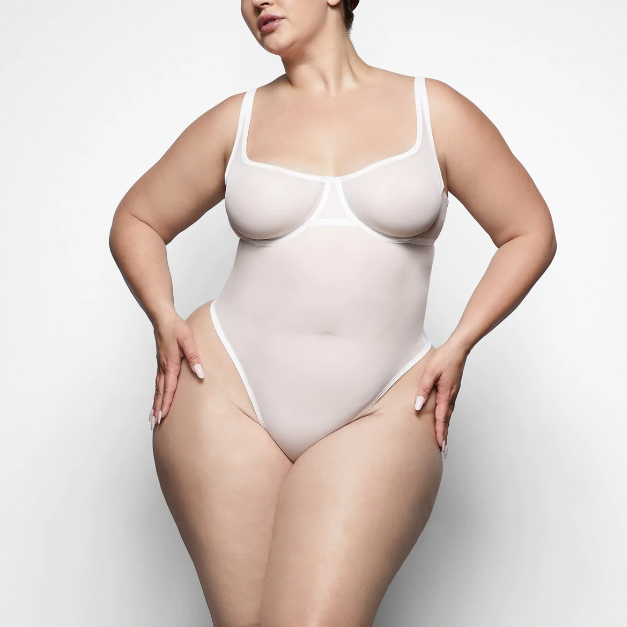 Skims Ultra Fine Mesh Bodysuit, $, available at Skims