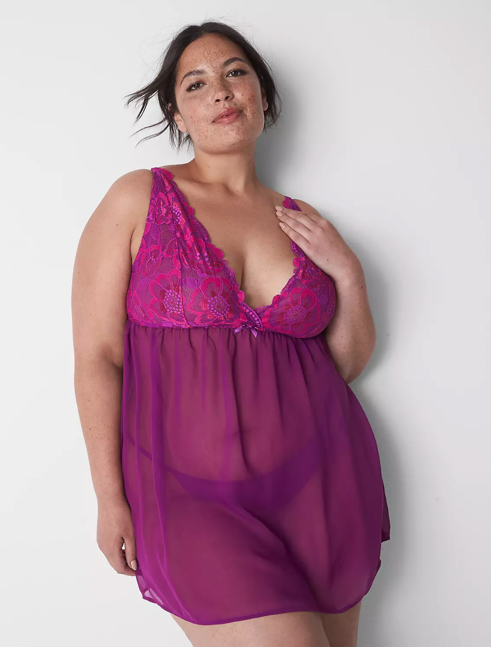 Cacique Chiffon Lace Babydoll, $, available at Cacique