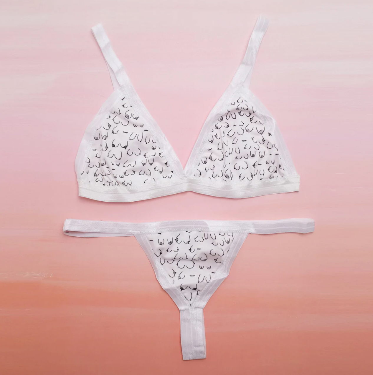 This super-cute set by Hey Mavens makes us smile every time we see it! Celebrate boobs of all shapes and sizes by adorning your own with an adorable print. In addition to a bralette and thong, the booby print also comes in a fuller-coverage bralette and undies, so you can mix and match to find your perfect combo.