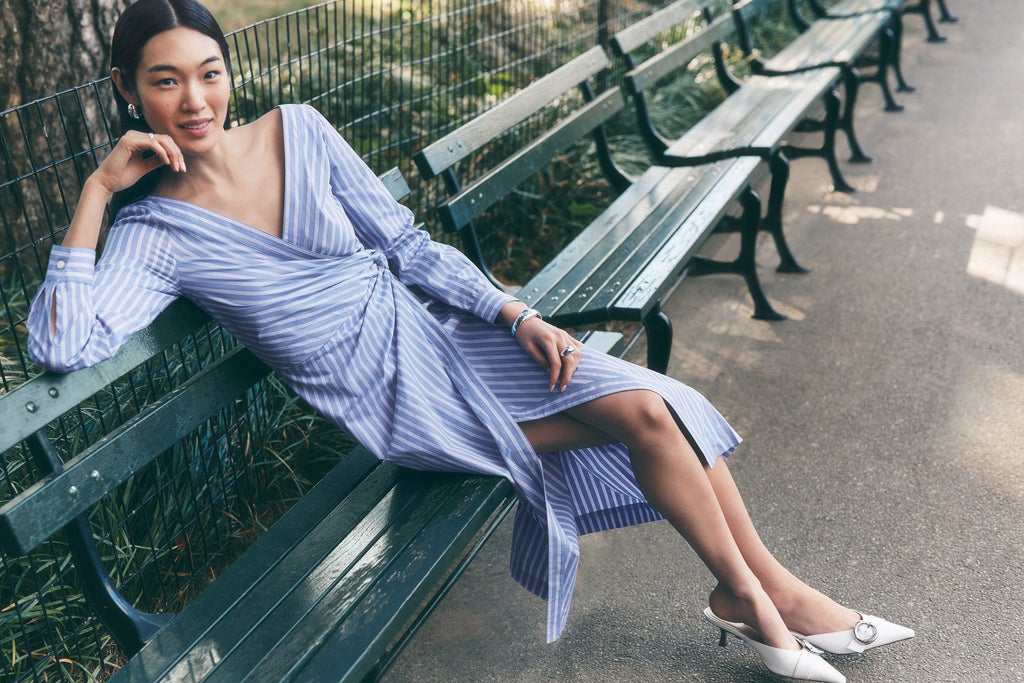 Taking a page out of the handbook of successful DTC brands like Reformation and Everlane, Ann Taylor is harnessing the power of influencers like Caruso to serve as a sort of online lookbook, re-introducing shoppers to the brand and the myriad of ways it can be worn. In new stores, digital monitors will feature this content, offering real-time ideas for customers pulling things into a dressing room. In addition to these creators, Ann Taylor has also been dressing celebrities like Katie Holmes, Viola Davis, and Drew Barrymore, who, while in their 40s and 50s, have enduring personal style that manages to toe the line between playful and sophisticated.