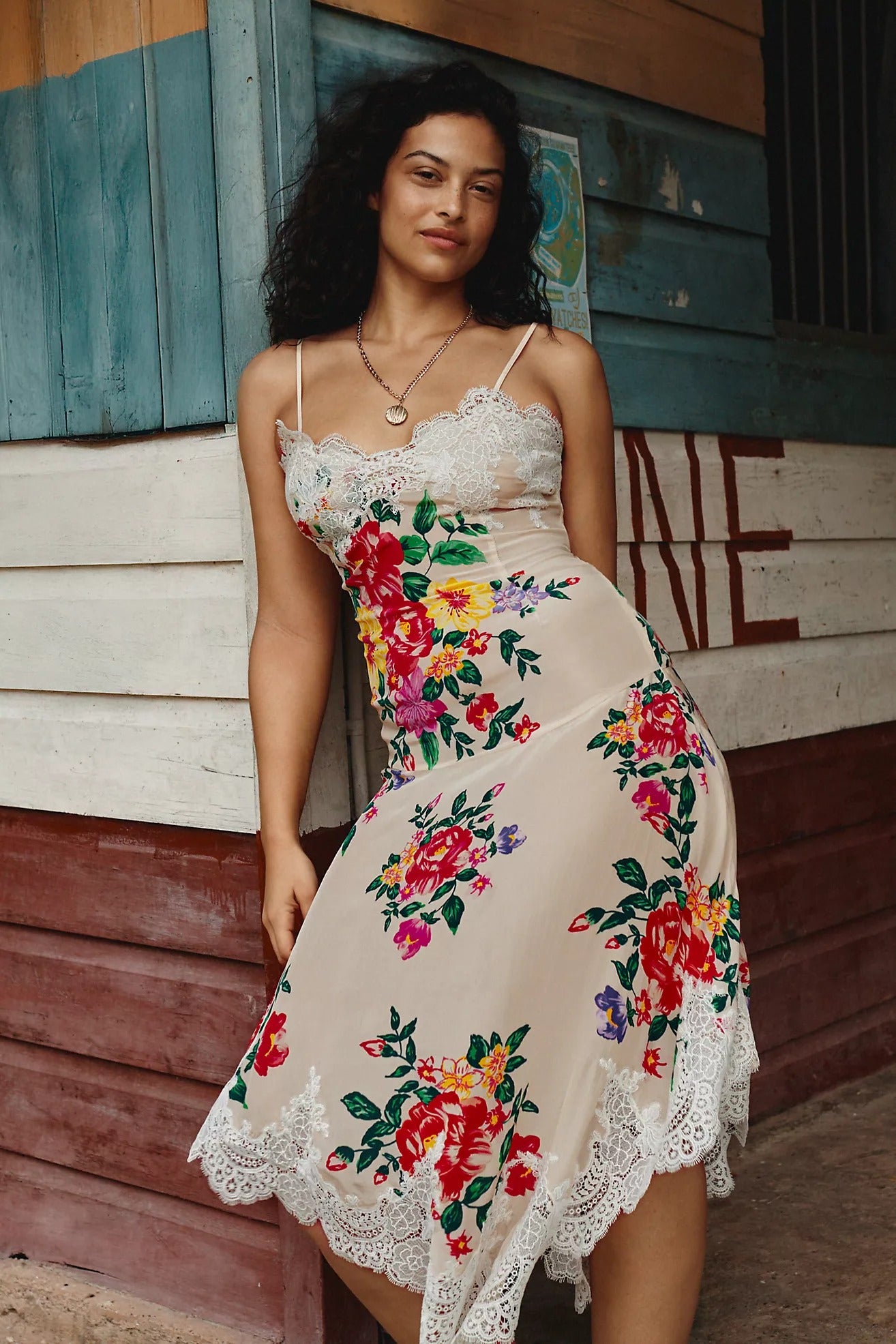 By Anthropologie Sleeveless V-Neck Lace Slip Midi Dress, $, available at Anthropologie