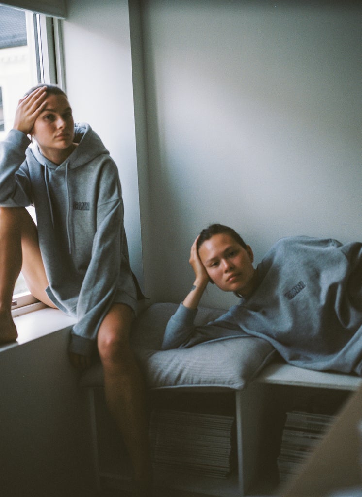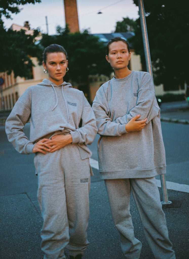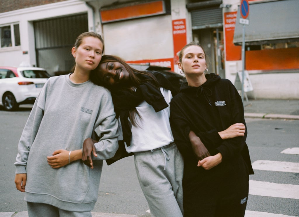 On Wednesday, Danish cult brand Ganni launched its first-ever loungewear offering, just in time for fall. The two-part collection, aptly titled Software, includes four silhouettes — a crewneck, a hoodie, sweatpants, and a T-shirt — in three colorways — white, heather gray, and black — which can be mixed and matched, as shown in the collection’s campaign. The campaign, which took place in various locations around Copenhagen at sundown, was shot by Sara Abraham, an Oslo-based photographer who most recently shot the Ganni x Levi’s rental denim campaign.