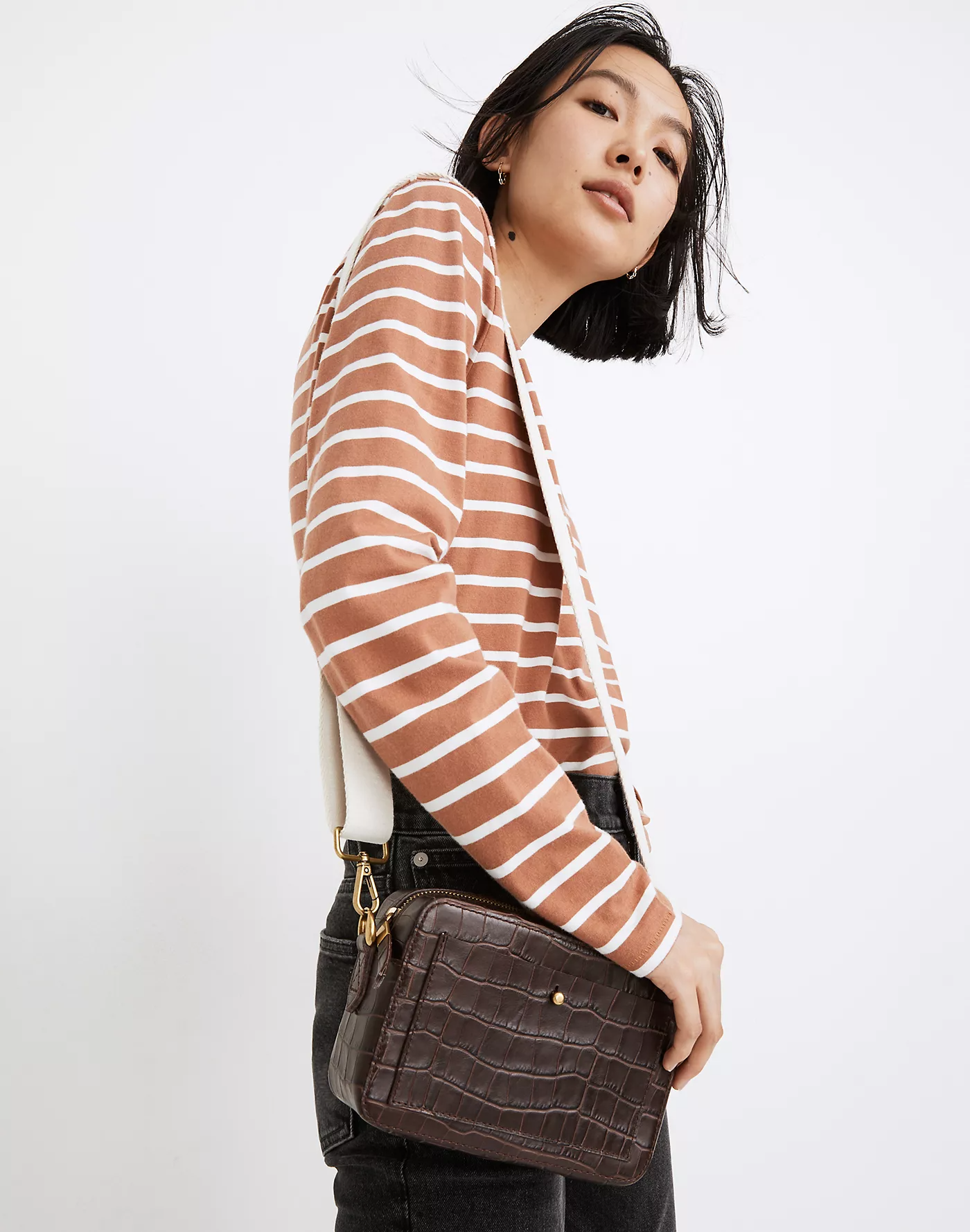 Madewell The Transport Camera Bag: Croc Embossed Leather Edition, $, available at Madewell
