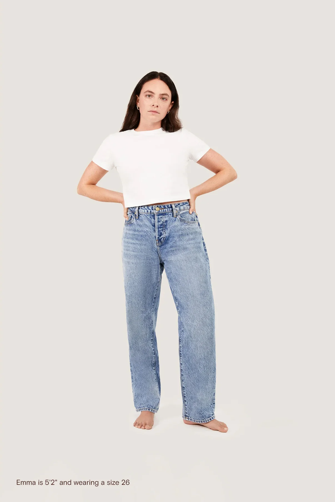Still Here jeans have an endorsement from R29’s very own Senior Partnership Manager, Kate Spencer, who stands at a petite but mighty 5’1″. She loves how “the co-founder/creative director, Sonia Mosseri, is quite petite and produces most of the brands’ styles down to a size 22, which is pretty rare in the denim landscape and wildly amazing for smaller-framed people.” If that isn’t a great endorsement for petite-friendly jeans, I don’t know what is. Kate also recommended Still Here’s newest style, the Everyday Jean, which is a more relaxed, but not too oversized fit and the Tate as another petite-friendly option as it’s one of the brand’s more cropped cuts.
