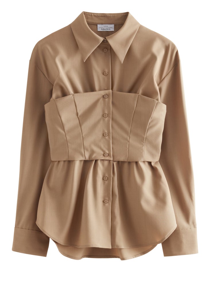 Corsets aren’t just for going out anymore, and this work shirt proves it. Providing a cinched and glammed-up edge to your otherwise standard shirt, this piece promises to do some heavy lifting across professional and casual dress codes.