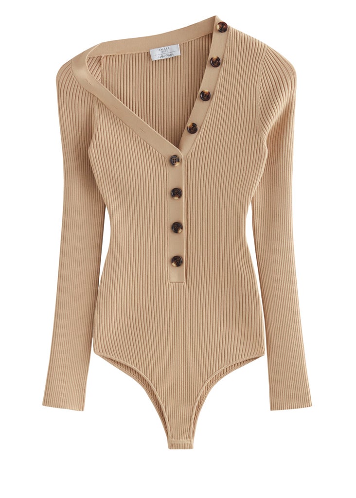 A.W.A.K.E. Mode x & Other Stories Asymmetric Shoulder Bodysuit, $99