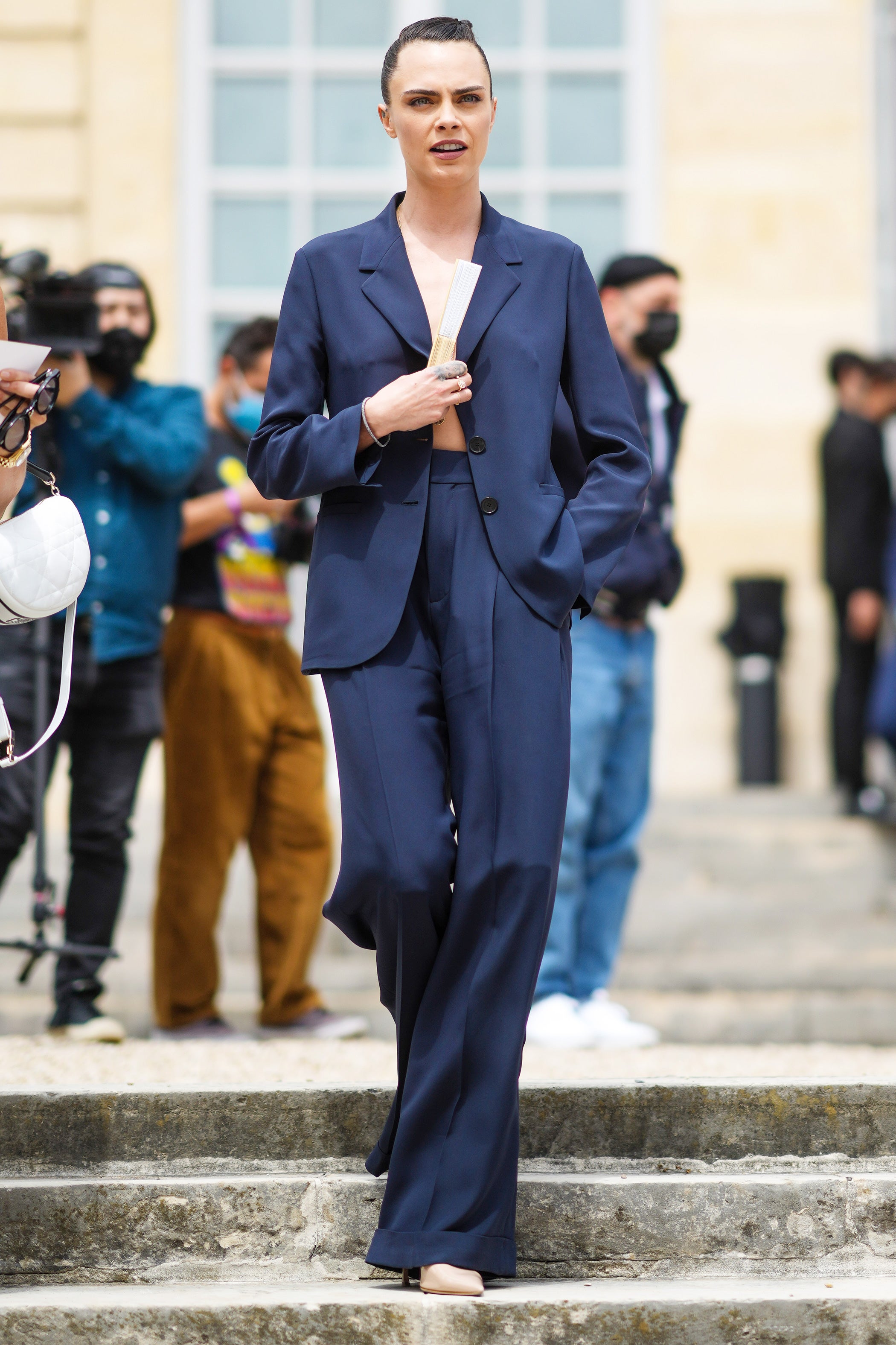The IRL shows also mark the return of street style. In Paris, couture show attendees gave their stamp of approval to one of fall’s biggest upcoming trends: menswear-inspired silhouettes, as was evidenced by designers like The Row, Gucci, Prada, and Alexander McQueen back in April.