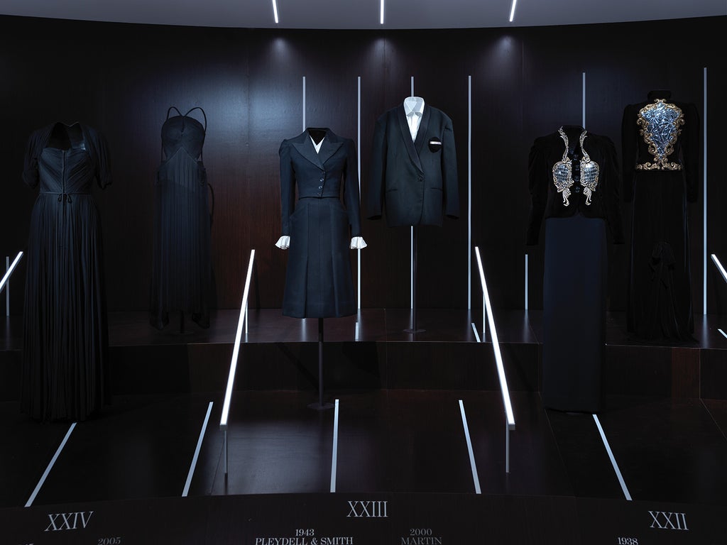 Featuring mostly black pieces — to “make the comparisons between the pairings immediately,” according to Bolton — the brands selected range from heritage (Chanel, Yves Saint Laurent, Dior, Givenchy) to avant-garde (Comme des Garçons, Issey Miyake, Alexander McQueen, Martin Margiela) and unabashedly modern (Libertine, Off-White, Hood by Air, Rick Owens). The theme of time is further expanded using concepts from philosopher Henri Bergson and writing from Virginia Woolf. (The exhibit opens with a quote from Woolf’s Orlando, and quotations in the exhibit are read aloud by Nicole Kidman, Meryl Streep, and Julianne Moore, who all starred in the 2002 movie The Hours, based on the Michael Cunningham novel that was inspired by Woolf’s Mrs Dalloway.)
