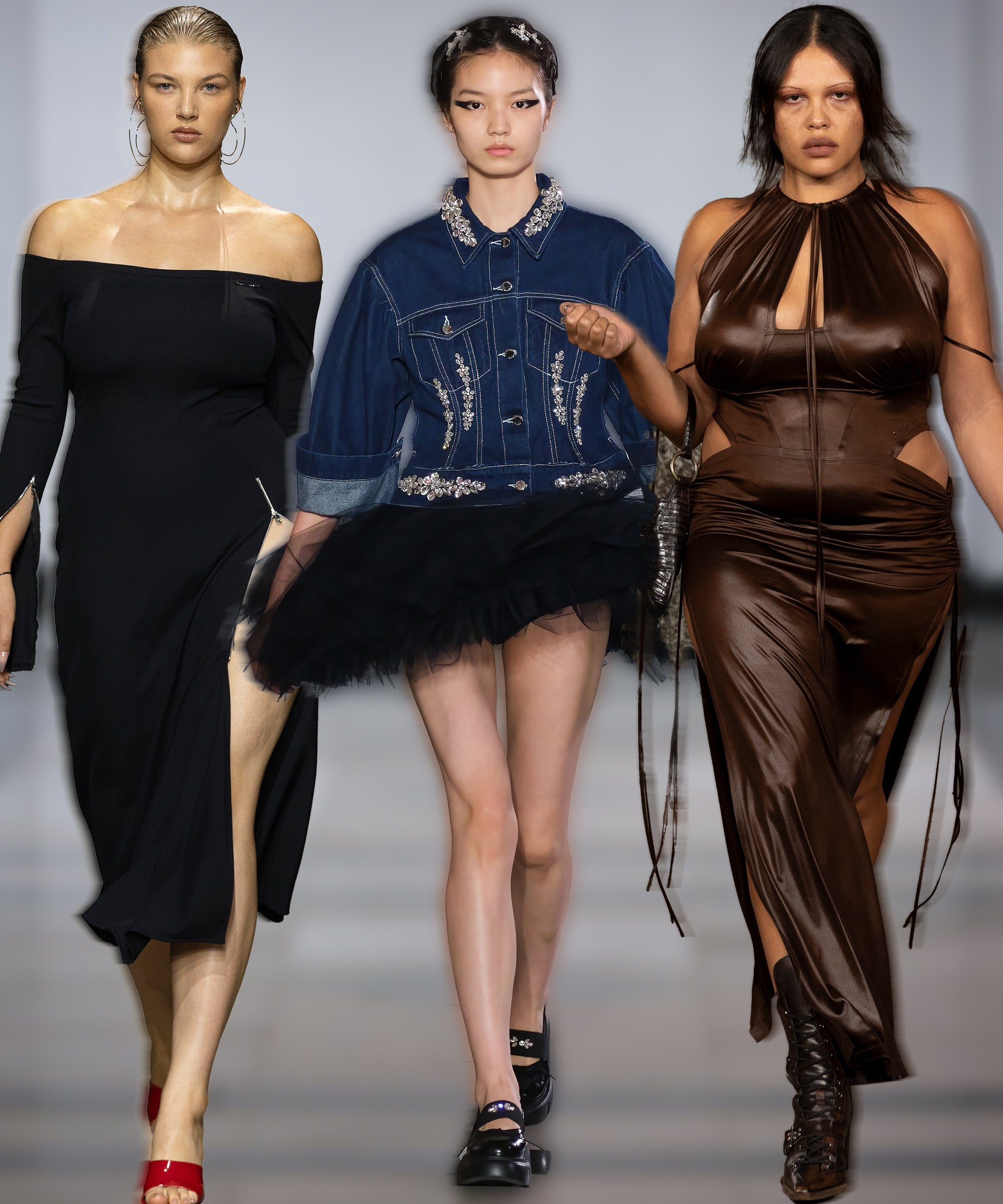 For spring/summer 2025, brands are serving up ‘90s-style black dresses reminiscent of icons from the era (think: Calvin Klein’s simple slips and Alaïa’s curve-hugging midis). Karoline Vitto and Nensi Dojaka — two brands known for celebrating feminine curves — brought out dresses with high slits, cold shoulders and asymmetrical silhouettes.