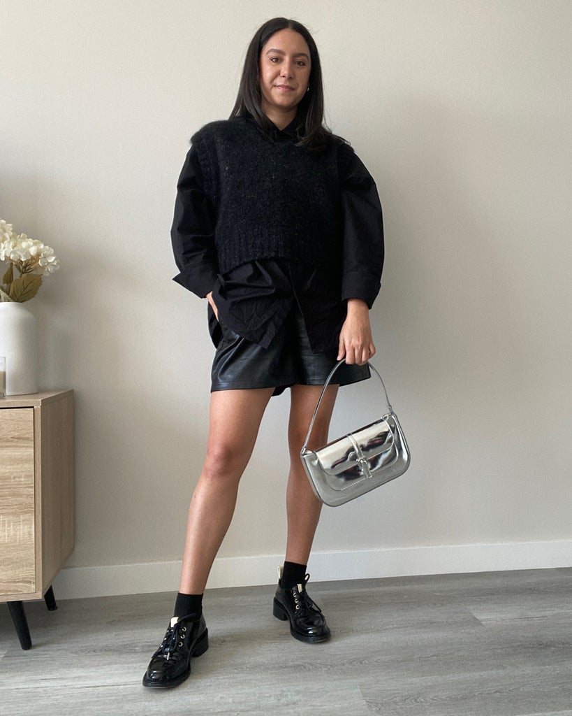 “For years, I’ve amassed a pretty sizable boots collection, but lately, I had wanted to wear other types of shoes during the winter. As preppy styles are trending, I was ecstatic to try Nomasei’s new Derby model, and I can say they live up to the hype. They’re super practical and functional, but add a little edge to any outfit with their shiny texture. So far, I’ve styled them with trousers, as well as leather shorts (pictured above).