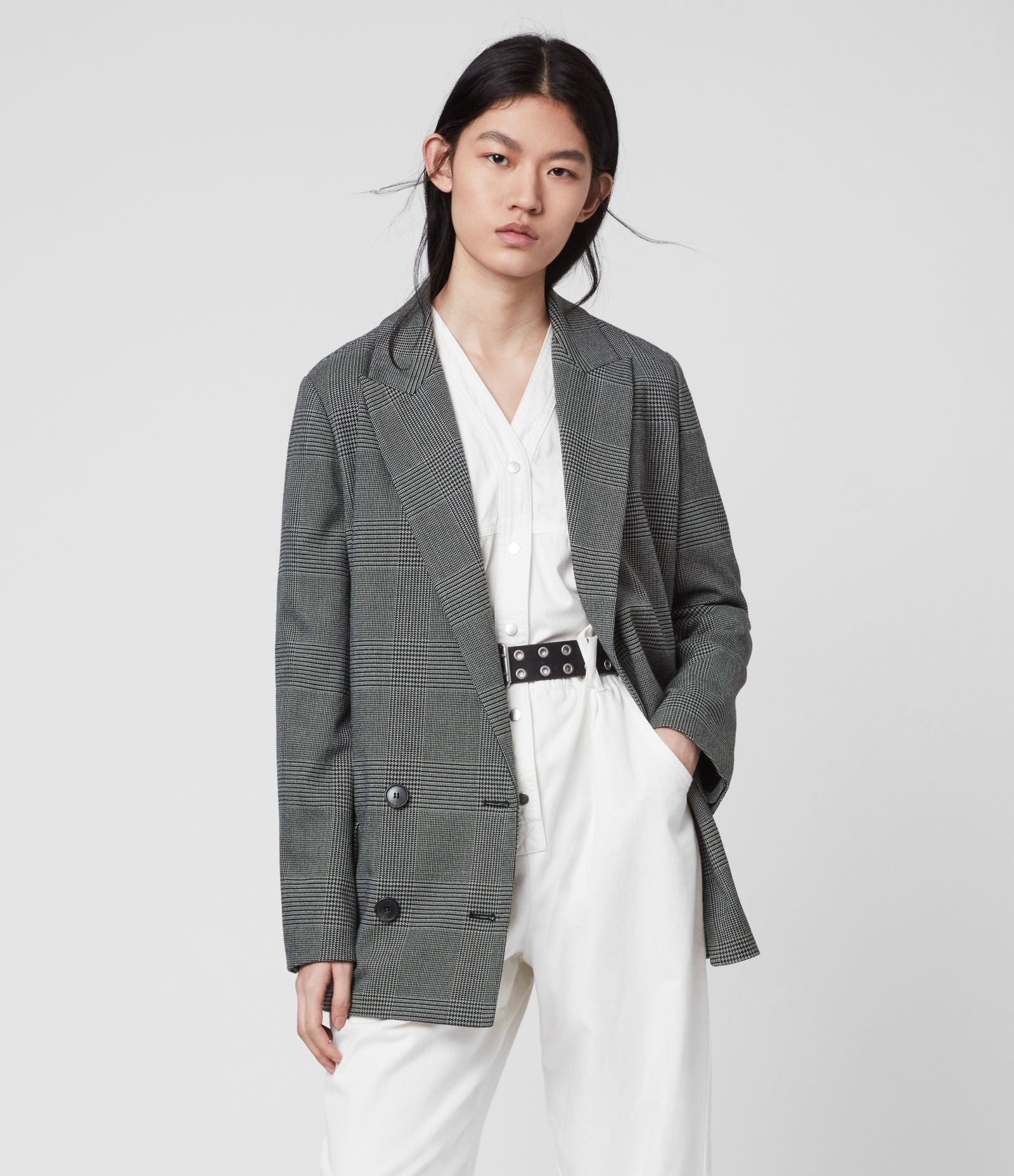 All Saints Helei Check Blazer, $, available at All Saints