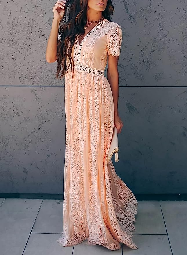Bdcoco Lace Short Sleeve Maxi Dress, $, available at Amazon