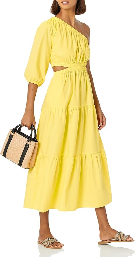 The Drop April One Shoulder Cut-Out Tiered Midi Dress, $, available at Amazon