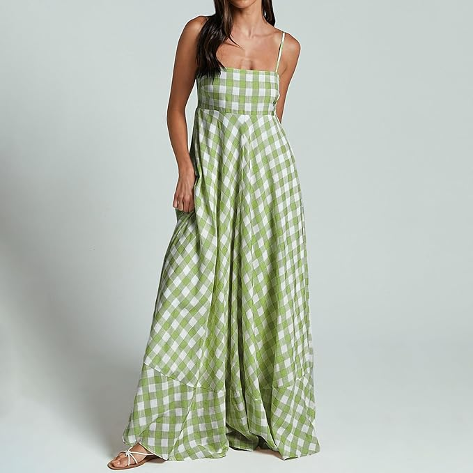 AUJUBUY Gingham Sleeveless Sundress