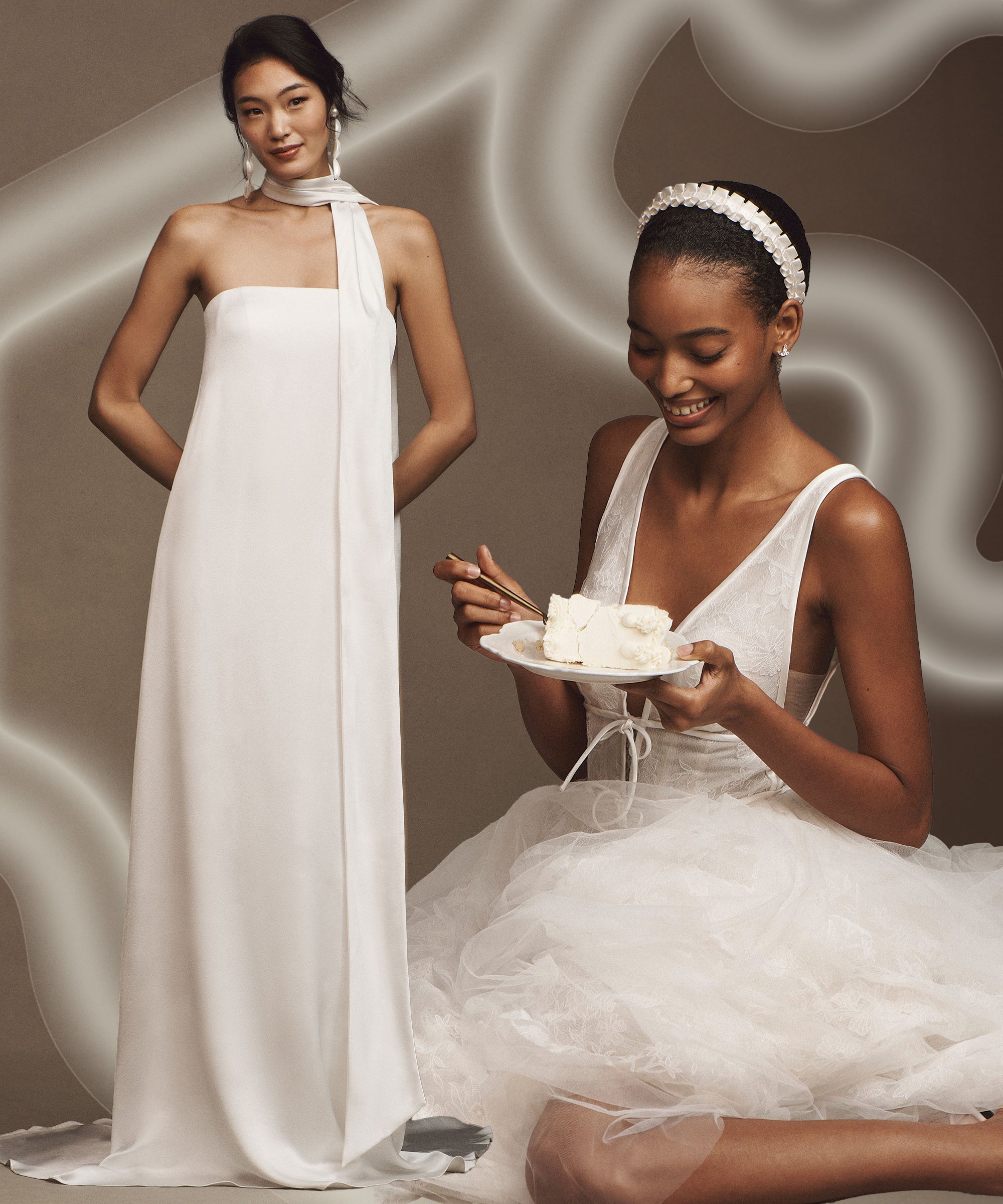 “Our classic ballgowns celebrate the bride’s desire for a timeless moment while incorporating modern touches that make each gown uniquely her own,” Thrasher said. The collection includes over 10 voluminous styles that will help you make the grandest of entrances. From exaggerated lace and tulle skirts to ruffled taffeta skirts, these dresses offer a mix of classic and contemporary design elements for the more traditional brides. Bonus: Some styles come with matching gloves or scarves to complete your wedding look.