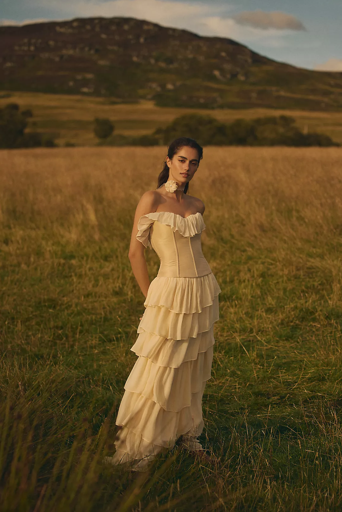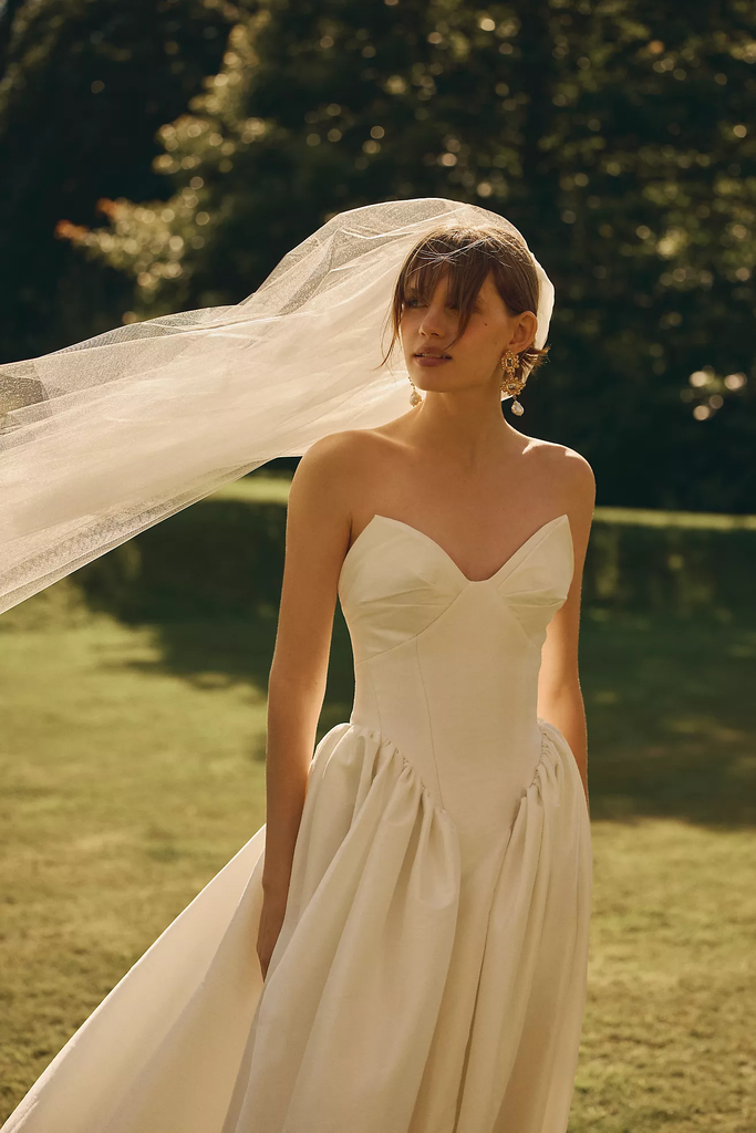 “We’re thrilled to unveil our new bridal drop where each gown embodies the essence of individuality and romance,” chief merchandising officer of apparel at Anthropologie, Holly Thrasher, told Refinery29. “Our latest assortment offers three unique design sensibilities that highlight new bridal trends and exclusive styles.”