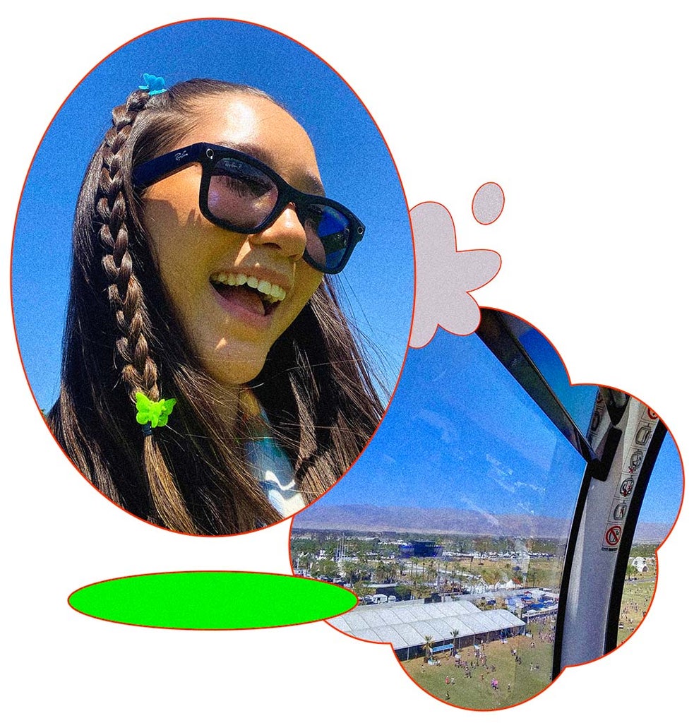 3:40 p.m. — We stroll over to the next performance to watch an artist making history as one of the first Indian women performing at Coachella, mixing English and Hindi in her songs. I make sure to record bits of the performance on the glasses to save this revolutionary moment in my archive of concert videos.