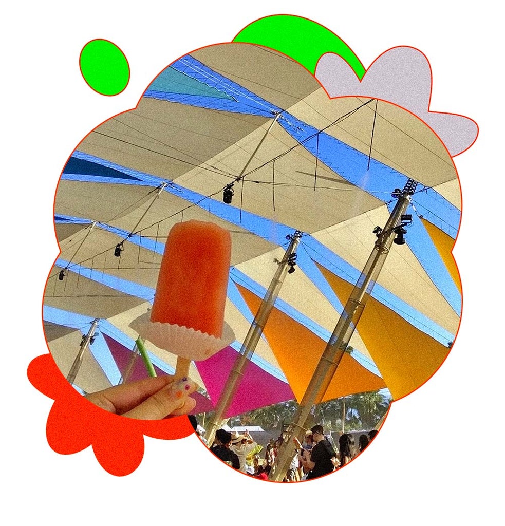 2:25 p.m. — Battling the heat, we traverse to one of the many stands dotted throughout the fields to grab an ice-cold lemonade. We marvel at all the beautiful art installations stretching into the sky while sipping on our drinks, in awe of the sheer size of this festival. From here, I can only spot there massive stages, and there are at least four more we have yet to explore.