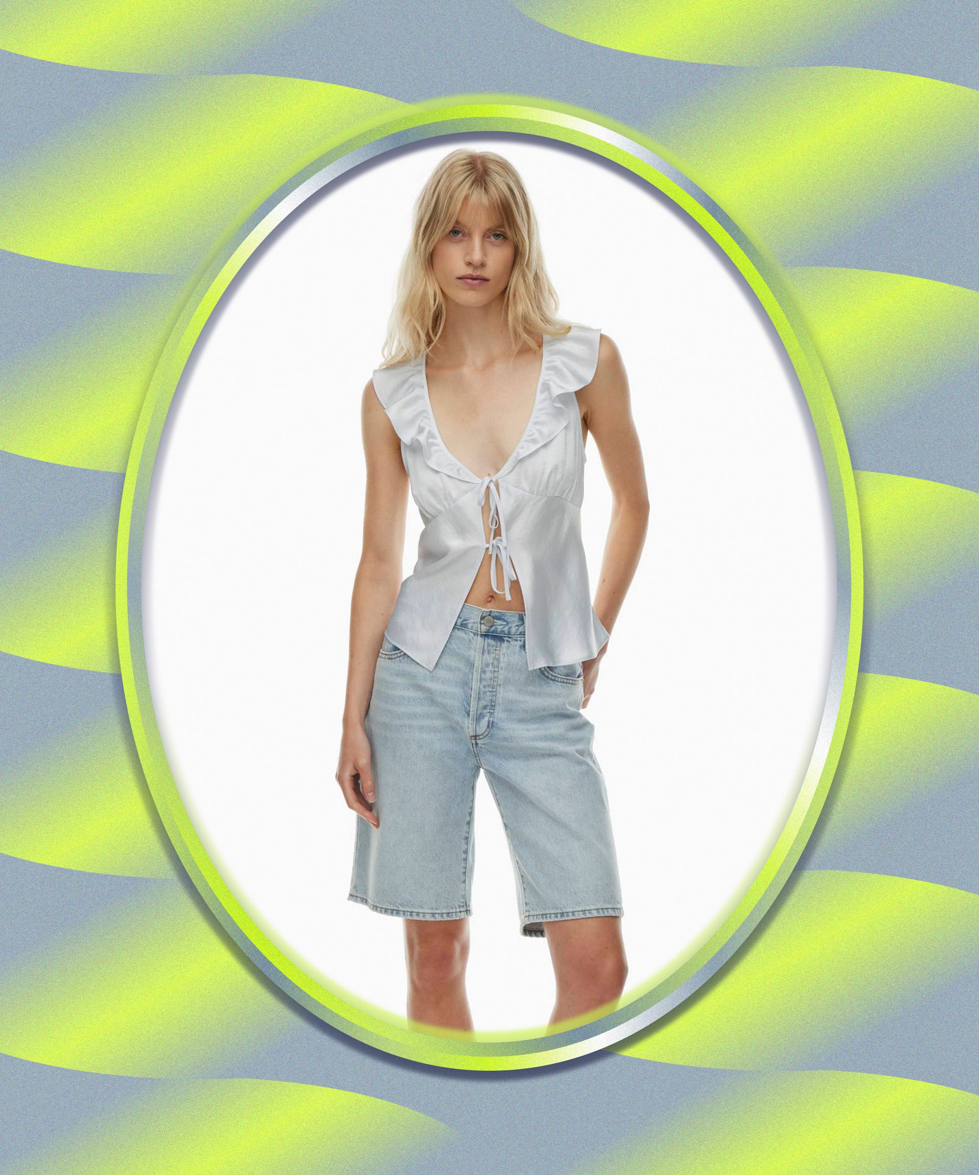 Denim jorts are back again, and you can find them on sale at Aritzia right now. But you can also find other denim essentials, like skirts, cutoffs, and, if you already want to look ahead to the cooler months, wide-leg jeans.