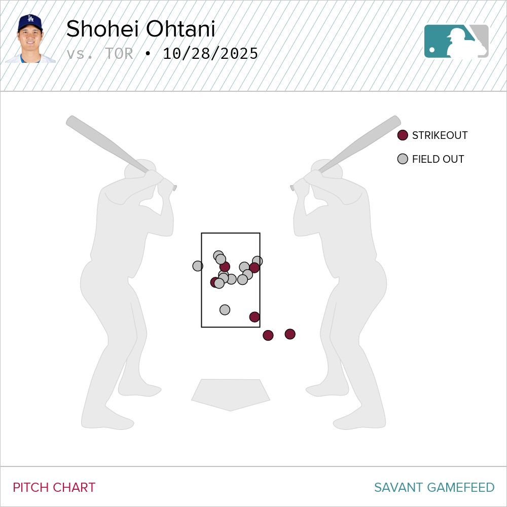 What you don’t want to do is fall behind and end up in the difficult dilemma of guarding against seven distinct offerings ranging from 72 to 102 m.p.h. That’s how Ohtani’s able to get away with so much on the plate, as he did against the Blue Jays in Game 4: