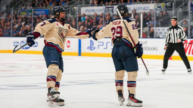 You couldn’t have scripted it better with Nursey getting the first goal and then it just being back and forth — you know, we’re down, then we’re tied up again, we’re down, we’re tied up — and then Claire (Thompson) scoring with like two minutes left to tie it up and send us into overtime. And then for (Abby) Boreen to get that overtime winner, we couldn’t have planned it out better. It was just a super entertaining game for the fans to get into, and I think we gave them a good show of what this league’s all about and what they have to look forward to in games to come.