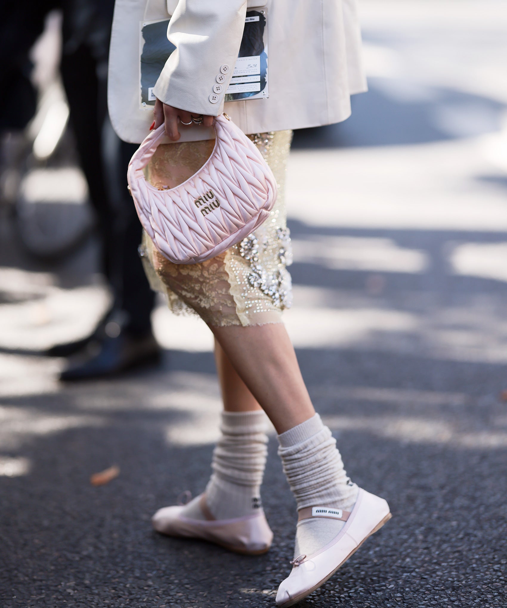 “The ballet flat was definitely an aughts staple,” says fashion writer and ballet flat enthusiast Tyler McCall. “I can think of so many tabloid moments, whether it was Amy Winehouse in literal ballet slippers or Alexa Chung in a pair of denim cutoffs and bright Chanel flats. We’re all about mining that nostalgia at the moment.”