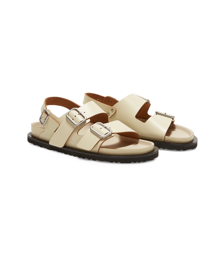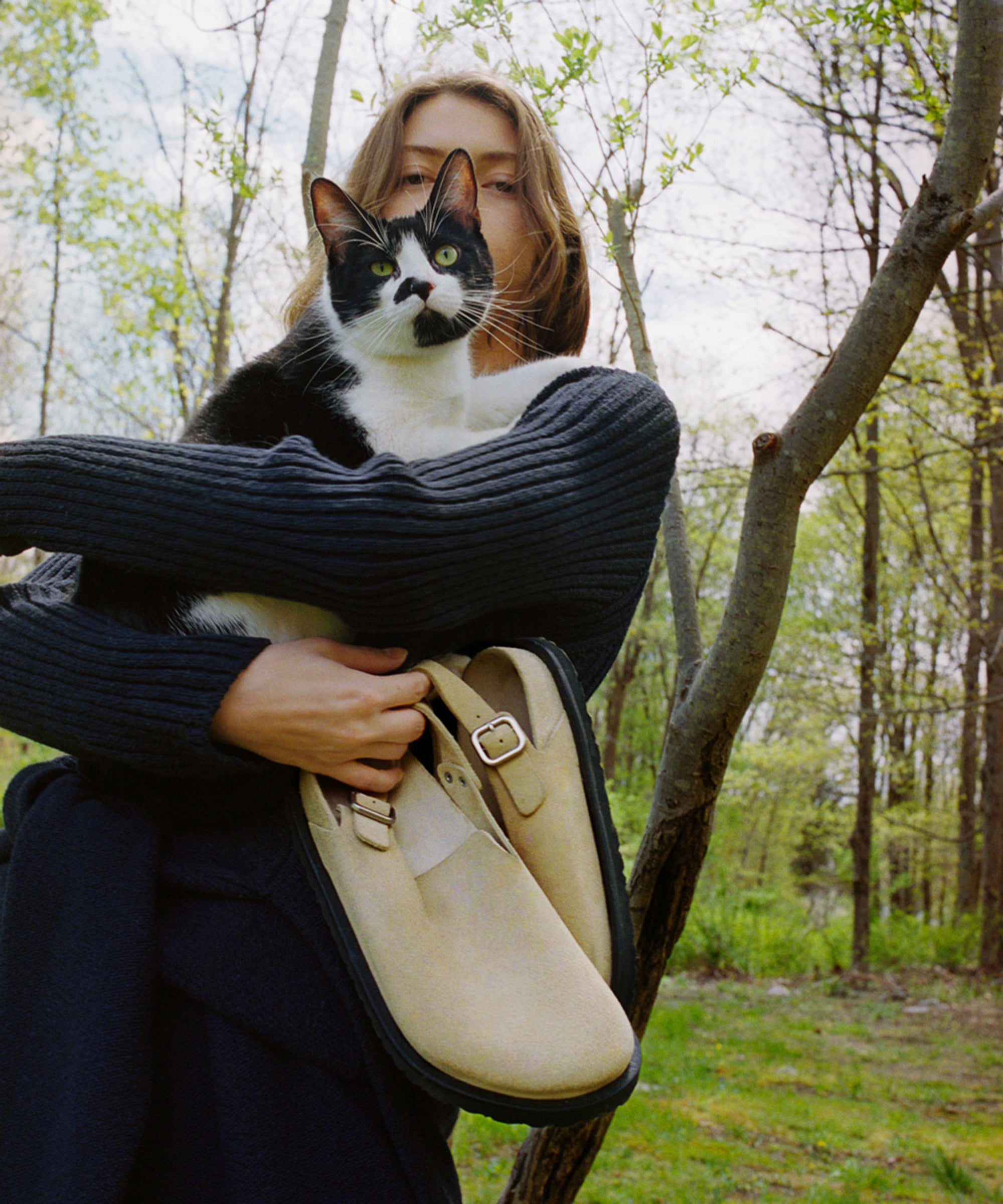 Taking the already existing styles — the Arizona, Berlin, and Milano — Jil Sander infused its elevated luxury aesthetic in the form of exaggerated silhouettes and rounded, wider outsoles and thicker straps. All to say: These are not your mom’s gardening Birkenstocks. There is also a new model called “Velan,” the Birkenstock answer to ballet flats which features wrap-around straps on the brand’s recurrent closed-toe style.
