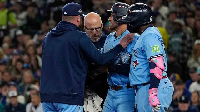 Worse still is that Springer, whose RBI double in the fifth inning tied the game 1-1, was hit on the right kneecap by a 95.6 m.p.h. fastball from Bryan Woo in the seventh and had to leave the game. While initial X-Rays were negative, he’ll undergo further tests once the team arrives in Toronto, although as Schneider noted, “he’ll have to really, really be hurting to not be in the lineup on Sunday.”
