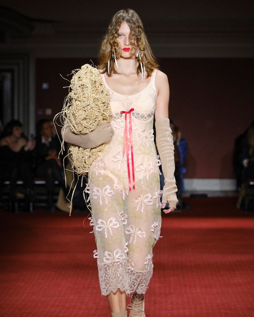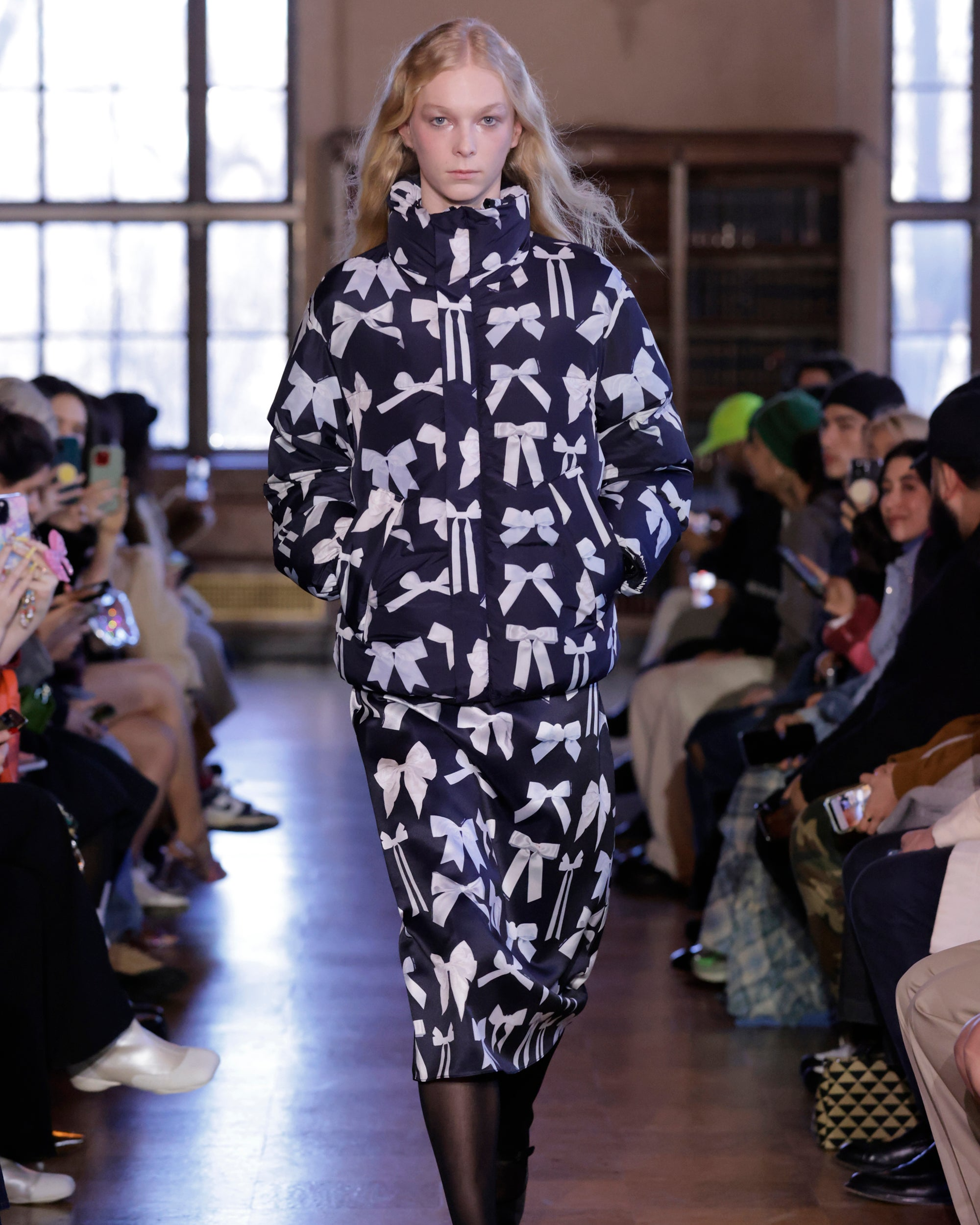 This season, the cutesy adornments were everywhere: London-based brand Simone Rocha showcased extra-long, dainty ribbon hair accessories, while designer label Balmain took a grandiose approach with XL-sized bows decorating wool sweaters and pussy-bow blouses. Sandy Liang has made the bow motif a signature of the New York-based brand, putting it on everything from classic button-ups and ballet flats to shoulder bags and headbands. (More recently, the label entered the homeware category, which included an entryway rug decked out in one long bow.)