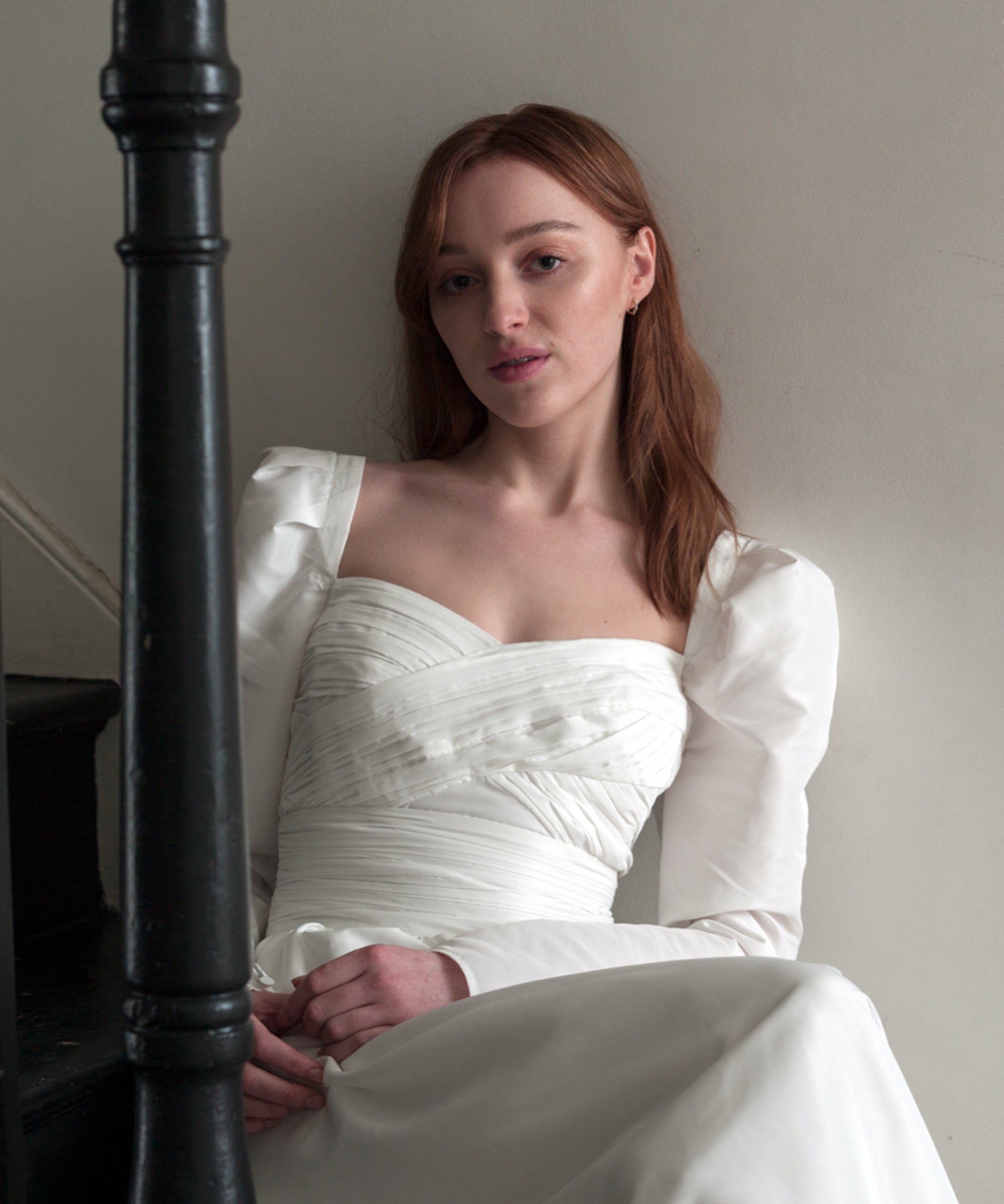 Rather than put on a runway show during Fashion Week, London-based brand Self-Portrait showcased its fall ‘21 collection with a campaign starring Bridgerton’s Phoebe Dynevor. In the photos, the star, who plays Daphne Bridgerton on the Regency-era Netflix drama, can be seen sprawled out on the floor of a London townhouse, decked out in sparkles, bows, and pearls — accoutrements her character has been known to don on the show. The actress also showcased puff-sleeves, lace collars, corset dresses, and pastels in the campaign. Sound familiar?