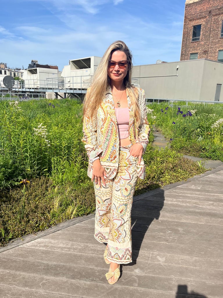How I styled it: This cropped style showed more of my midriff than I cared to expose so I styled it as a tank and wore it underneath this printed suit from Zara, which made for the perfect summer workwear look that is as effortless as it is fun and put-together.