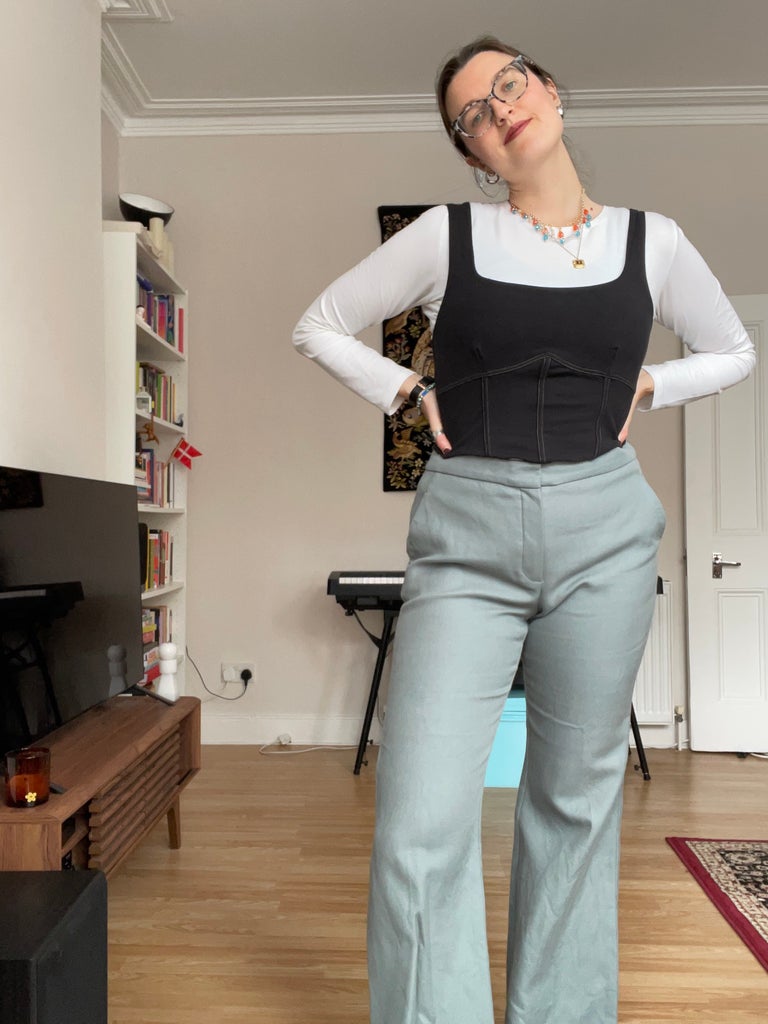 How I styled it: The idea of wearing a peplum top post-2012 did give me pause for thought so I decided to keep the rest of my outfit simple and streamlined. My personal style is a lot bolder and brighter than the cottagecore/milkmaid vibes of this corset so I was keen to play with the styling and use the lime green to pop against my black-and-white accessories of choice.