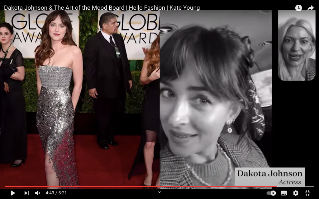 Dakota Johnson lies about limes. Her family used to have pet lions. She went on Ellen DeGeneres’ show, and casually accused the host of lying, as a fun talking point. Among her celebrity peers, all of whom push the limits of how absurd real life can be, Johnson appears to have the kind of surreal, whimsical existence that children’s books are written about. But, according to her stylist Kate Young’s latest YouTube video, Johnson’s fantastical quality didn’t exactly fall out of the sky. In reality, the Fifty Shades of Grey star is fairly intentional about what she introduces into her life, moodboarding everything from her meals to her emotions: “I love moodboards. They’re like playlists, but for physical things.”