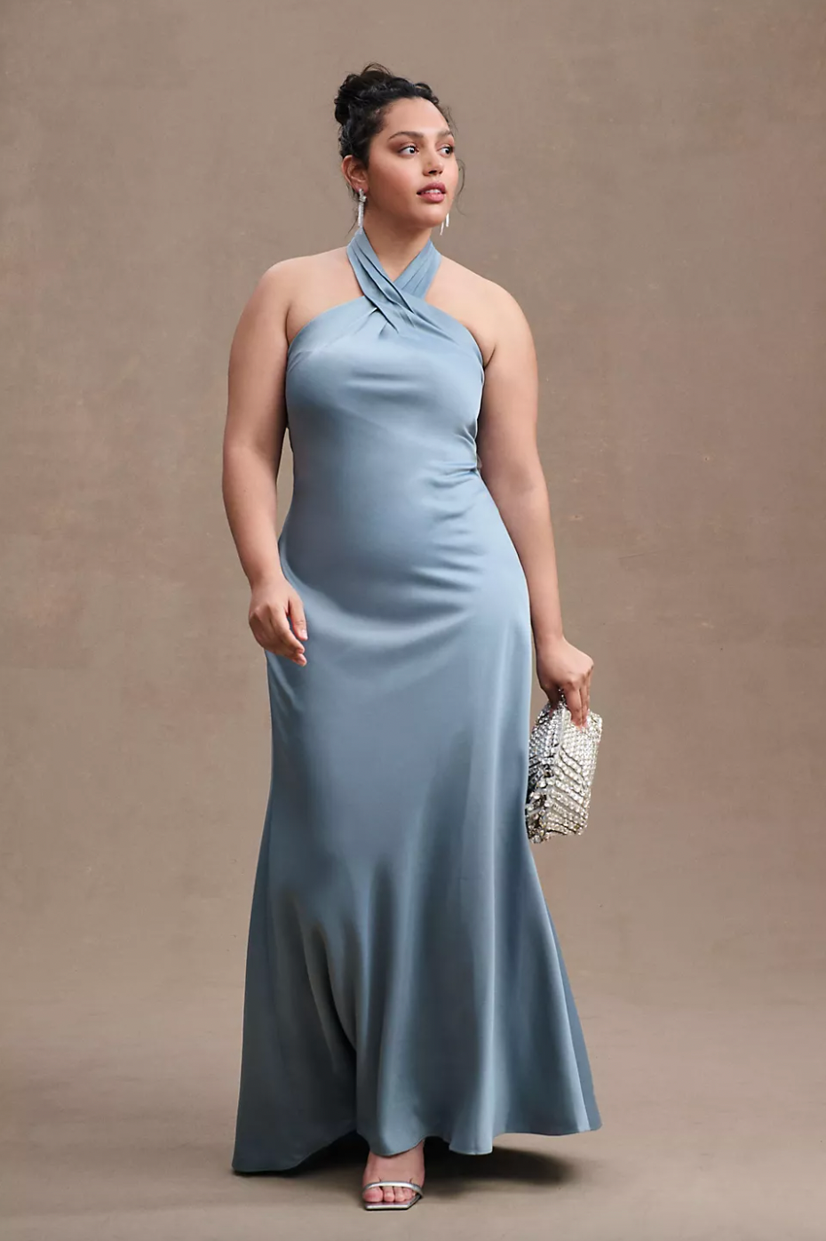 BHLDN Ruby Twist Halter Satin Gown, $, available at Anthropologie