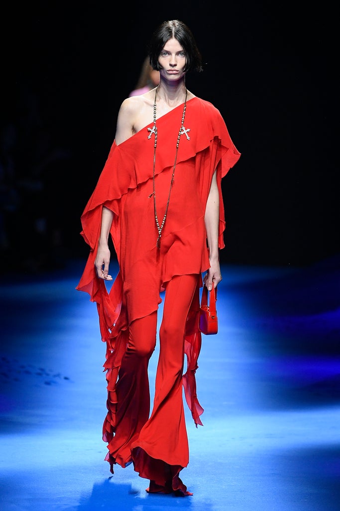 This trend is the kind of kooky spin on formality that’s signature of the 2020s fashion so far, when labeling outfits by occasion, gender, or season is just so last decade. That’s why I suggest you sport trains everywhere this 2023, whether paired with simple sandals and a ludicrously capacious handbag à la Acne spring 2023, over pants fashioned after Blumarine’s spring lineup, or even with a basic T-shirt.