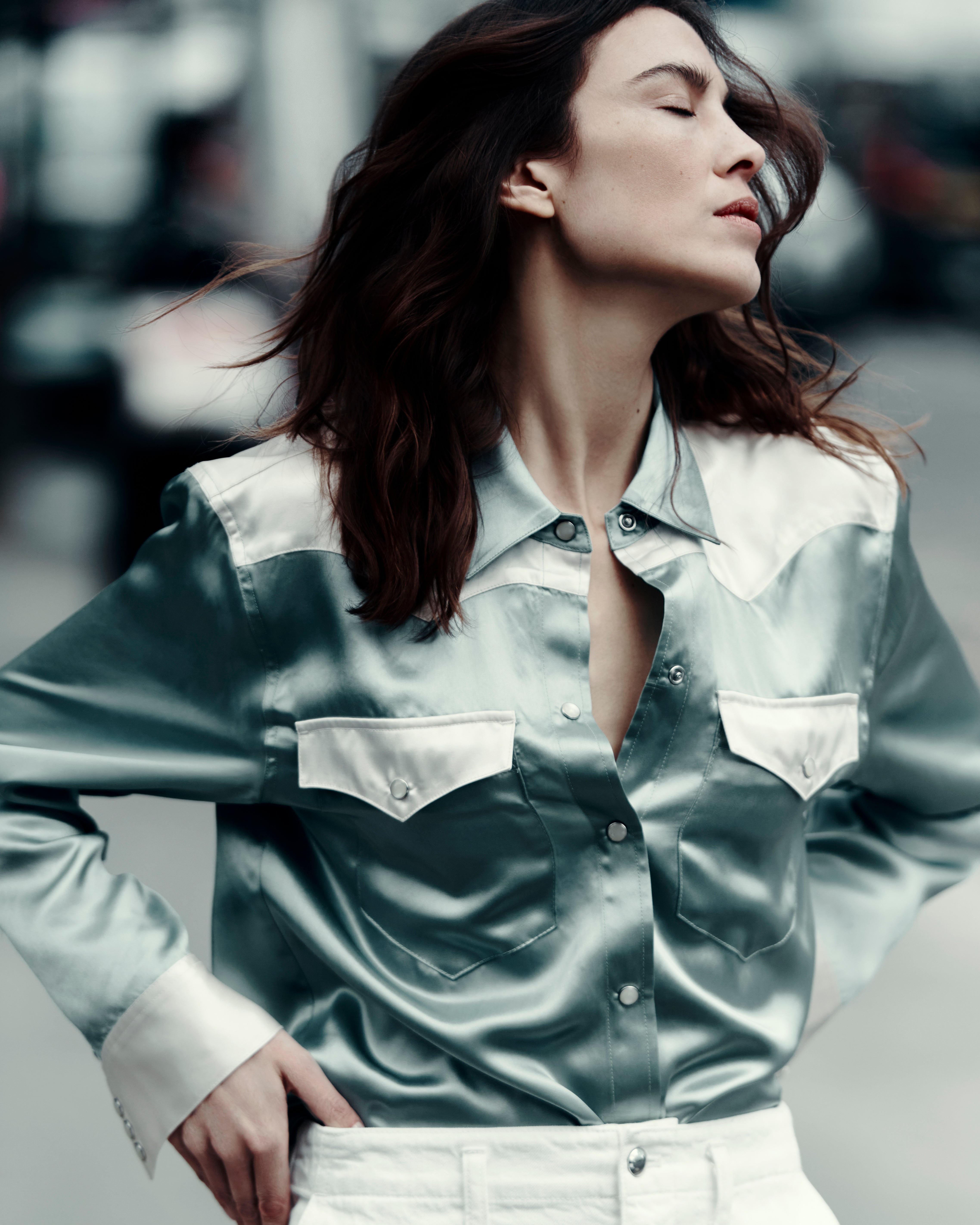 Madewell x Alexa Chung Satin Western Shirt, $, available at Madewell