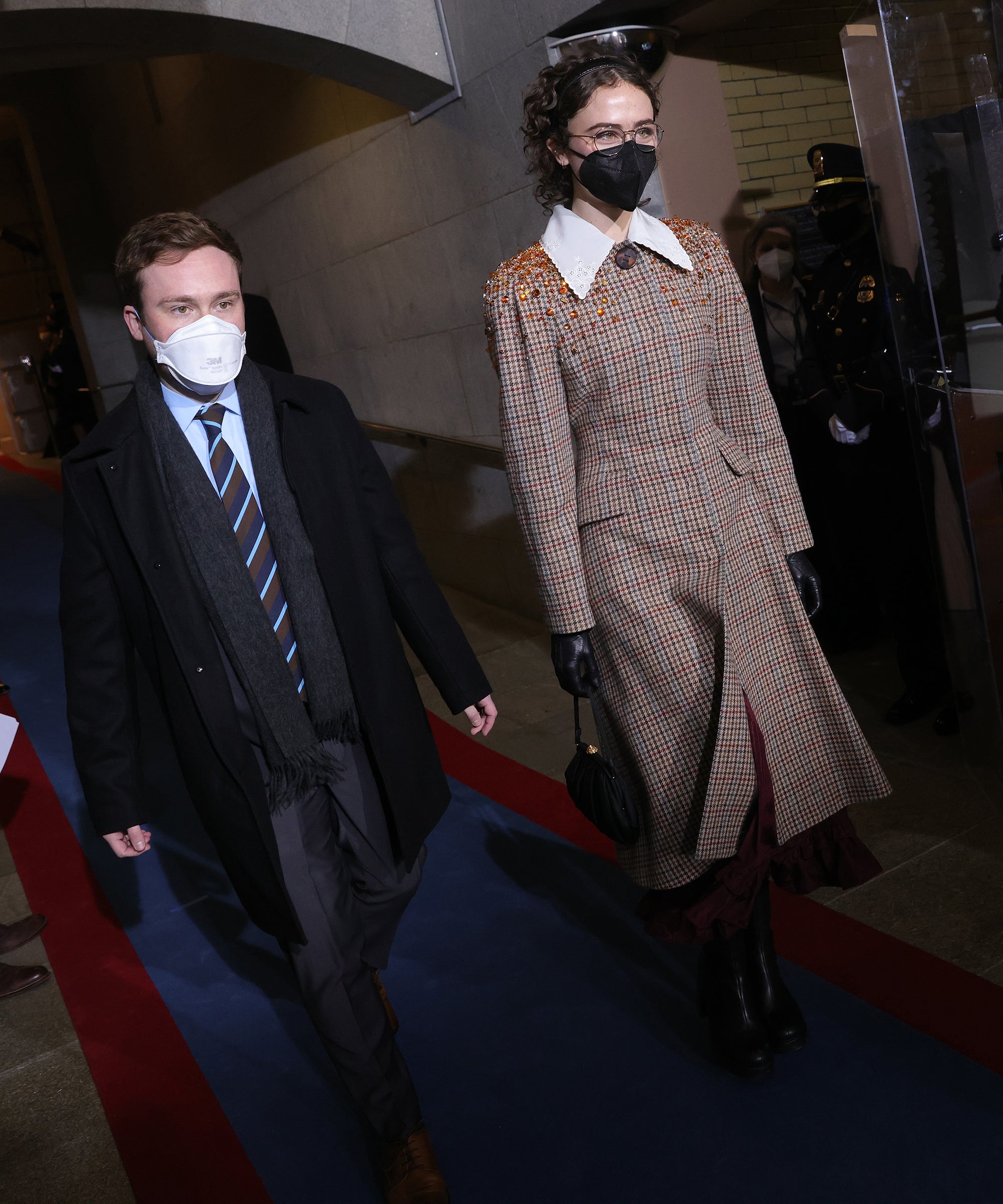 WASHINGTON, DC – JANUARY 20: Cole Emhoff (L) and Ella Emhoff, the stepchildren of Vice President-Elect Kamala Harris arrive for the inauguration of U.S. President-elect Joe Biden on the West Front of the U.S. Capitol on January 20, 2021 in Washington, DC. During today’s inauguration ceremony Joe Biden becomes the 46th president of the United States. (Photo by Win McNamee/Getty Images)
