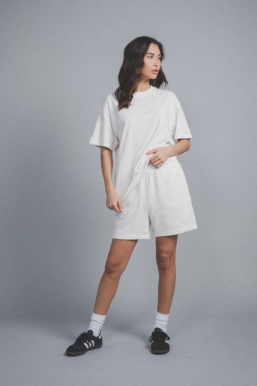 For the purposes of this story, I acquired the Oversized Core Tee in Vintage White, but this 100% organic cotton tee comes in an array of other neutral core colors, such as Vintage Black, Vintage Ash Grey, and Vintage Brown as well as seasonal limited-edition colors like Vintage Red, Vintage Royal, and Vintage Kelly Green (all of which are already sold out — sorry!). Because this style is unisex and oversized, I went down one size from my usual medium to a small — and it fits superbly on my 5’3” frame without me feeling like I was loosey-goosey in fabric.