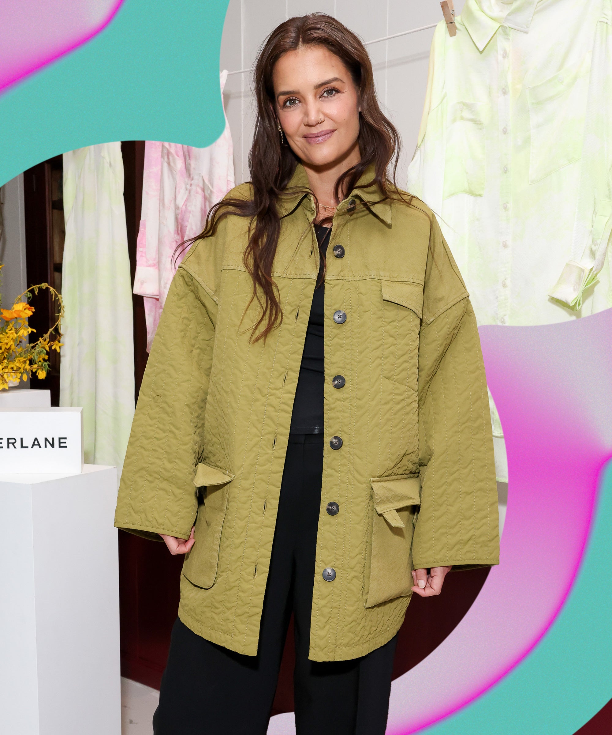 The 12-piece collection uses leftover denim patchwork pieces, respun satin viscose, sustainable alpaca yarn, and more to create elevated everyday styles inspired by iconic Everlane products. From the top-rated Relaxed Oxford Shirt and iconic Way-High Jean to the best-selling Alpaca Crew, Marques’ Almeida helped reinterpret these pieces with a twist. And the result is already a hit: Katie Holmes wore the collection’s patchwork jacket at the launch party on Wednesday.