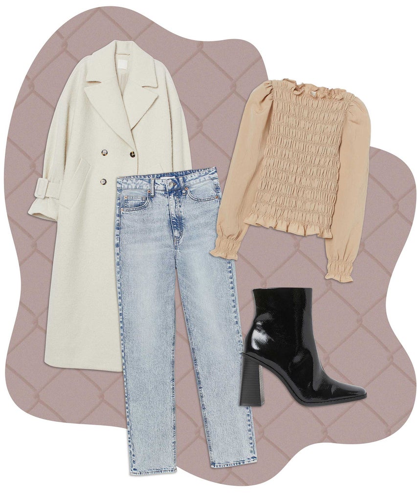 What’s better than a coat that can double as a duvet? One that’s partially constructed from recycled wool. Add a ruched top, jeans that look like they were made for you, and glossy ankle boots for a fit that screams “urban sophisticate” (in the most non-cheesy sense of the phrase).