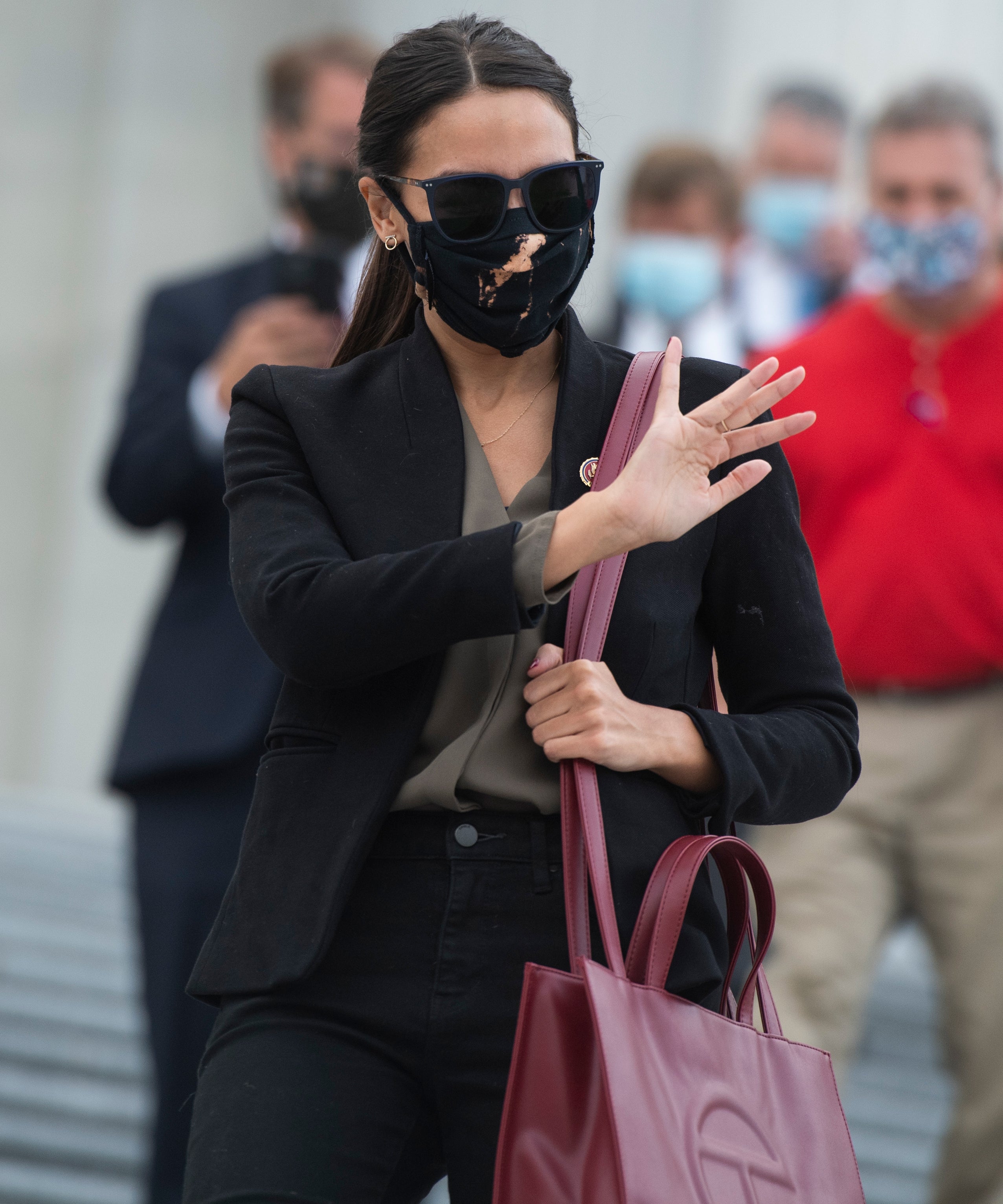 For many, it has been inspiring on an aesthetic level to see Pelosi embrace masks and make them into a fashion statement — which has since become a common sight on the political stage — before many of us discovered the fun of shopping for a face mask that could express our personal style. It has been even more fun to see Harris running around in her go-to Converse sneakers. Who hasn’t owned a pair of Chuck Taylors in their life? Who hasn’t worn them when they needed to be on their feet all day long? And, personally, it was downright thrilling to see AOC flaunting her shopping tote from Telfar. Like many people in August, I pre-ordered the bag that I, sadly, won’t get until this winter. (For a brief moment, I wished I got it in oxblood like AOC, rather than the bright red I went with.)