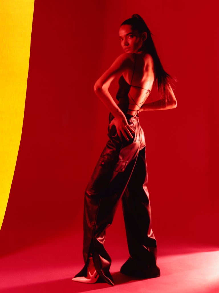For the final drop, Rihanna focused on the sense of freedom and hope in young people. The result is an array of ‘60s-esque psychedelic and playful pieces, including a trippy co-ord designed using Japanese tie-dye techniques, a flouncy asymmetric dress à la Paris Hilton circa 2004, an ultra-sexy backless going-out top, and a pinstripe shirt-and-pencil skirt ensemble produced in an acid flower print. A selection of ‘90s-era jewelry, from belly chains to anklets, round out the collection — one that reminds us of the days when summer’s arrival meant late nights spent dancing rather than staying home.