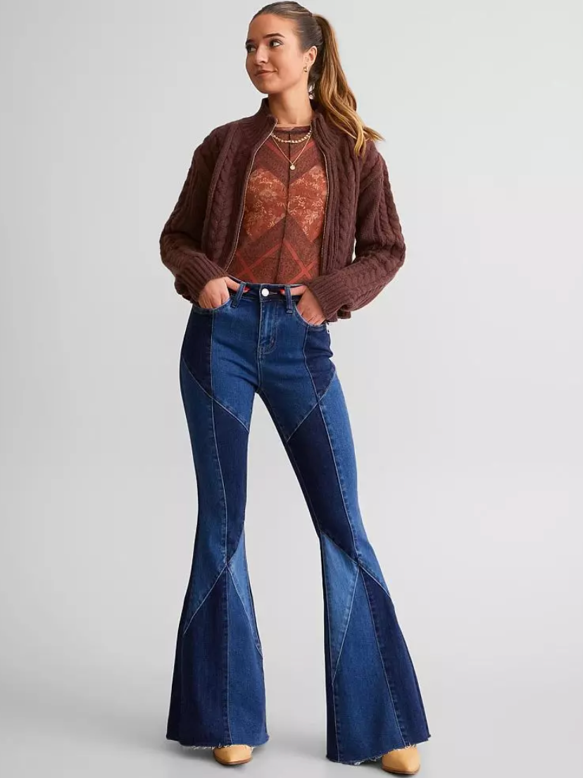 It’s been two years since the revival of low-rise jeans, and the look is still going strong. Add flare jeans to your lineup for a stylish twist.