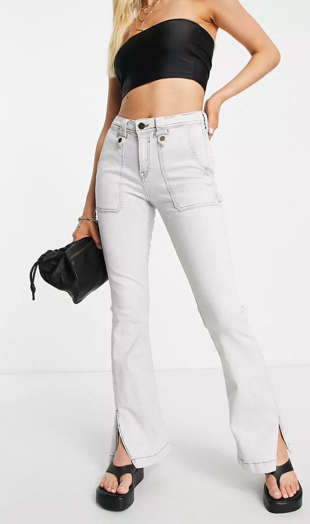 It’s time to elongate those legs with super-high-rise flare jeans. If you were searching for bottoms that would effortlessly pair with your itty-bitty tops, these are them.
