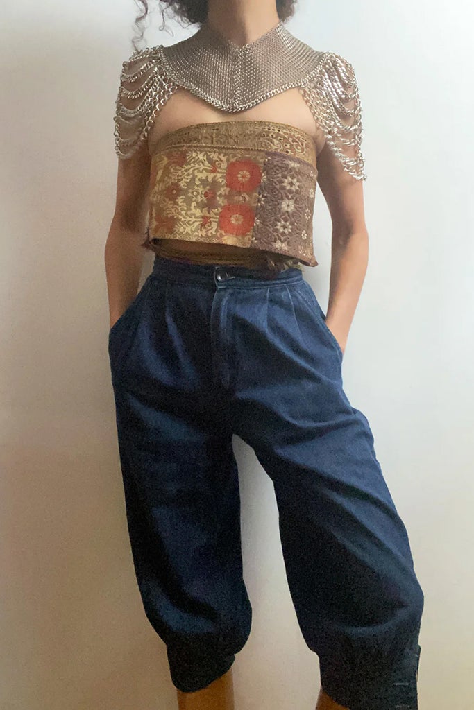 Intricate body chains or chainmail bodywear can transform even the most basic of dresses into a warrior princess get-up. I’ve spent hours daydreaming about the beautiful creations by Falconiere, which combine traditional chainmail with modern designs like halter neck bralettes, mini skirts, and girdles. (These chainmail tights the brand has been teasing on its socials are my Roman Empire).